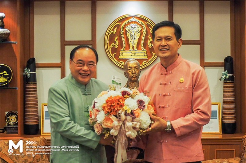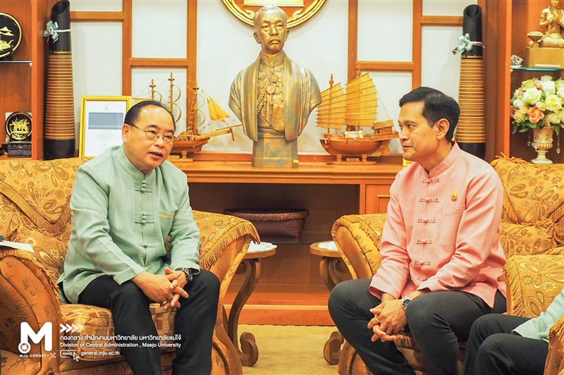 วันอังคารที่ 7 ตุลาคม 2568 รองศาสตราจารย์ ดร.วีระพล ทองมา อธิการบดีมหาวิทยาลัยแม่โจ้ พร้อมด้วยคณะผู้บริหารมหาวิทยาลัย เข้าพบ นายทศพล เผื่อนอุดม ผู้ว่าราชการจังหวัดเชียงใหม่ เพื่อแสดงความยินดีในโอกาสที่ได้รับพระบรมราชโองการโปรดเกล้าฯ แต่งตั้งให้ดำรงตำแหน่ง ผู้ว่าราชการจังหวดเชียงใหม่ ทั้งนี้พร้อมหารือการจัดกิจกรรมต่างๆ รวมทั้งการสร้างความร่วมมือระหว่างมหาวิทยาลัยแม่โจ้และจังหวัด เพื่อพัฒนาเชียงใหม่ให้เติบโตอย่างยั่งยืน ทั้งในเชิงเศรษฐกิจ สังคม และคุณภาพชีวิตของประชาชนต่อไป