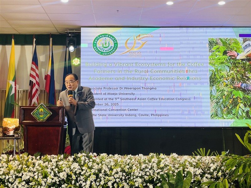 ระหว่างวันที่ 25 - 27 พฤศจิกายน 2568 รองศาสตราจารย์ ดร.วีระพล ทองมา อธิการบดีมหาวิทยาลัยแม่โจ้ เข้าร่วมพิธีเปิดและได้รับเชิญให้ร่วมเป็นวิทยากรบรรยายพิเศษ ในการประชุมวิชาการด้านกาแฟแห่งเอเชียตะวันออกเฉียงใต้ The 3rd Southeast Asian Coffee Education Congress (SEACEC) โดยจัดขึ้นในธีม “KAPE’T BISIG: Knowledge, Action, and Partnership for Empowerment: Towards Building Inclusive, Sustainable, and Innovative Governance for Southeast Asian Coffee” ในระหว่างวันที่ 25-27 พฤศจิกายน 2568 ณ International Convention Center, Cavite State University ประเทศสาธารณรัฐฟิลิปปินส์