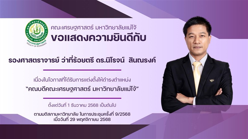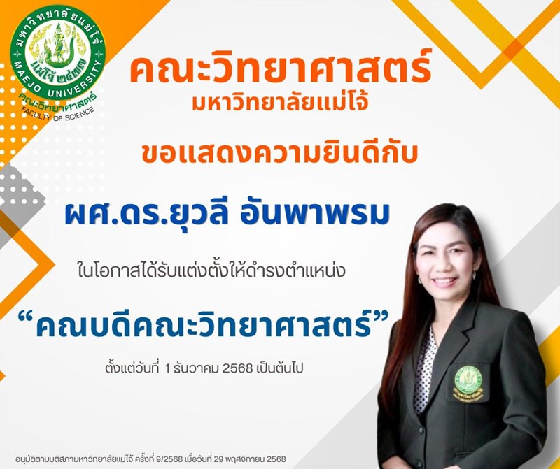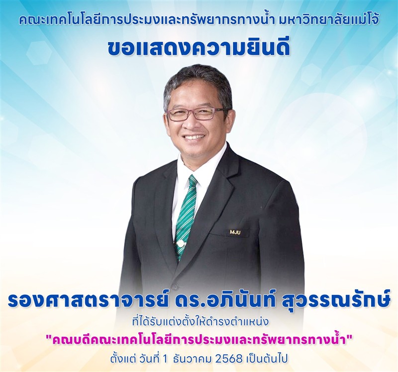 ... ตั้งแต่วันที่ 1 ธันวาคม พ.ศ. 2568 เป็นต้นไป ตามมติที่ประชุมสภามหาวิทยาลัยแม่โจ้ ในการประชุมครั้งที่ 9/2568 เมื่อวันที่ 29 พฤศจิกายน 2568