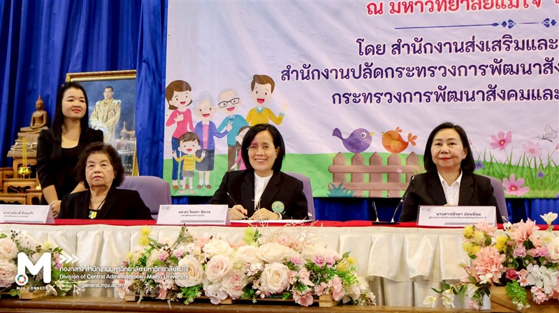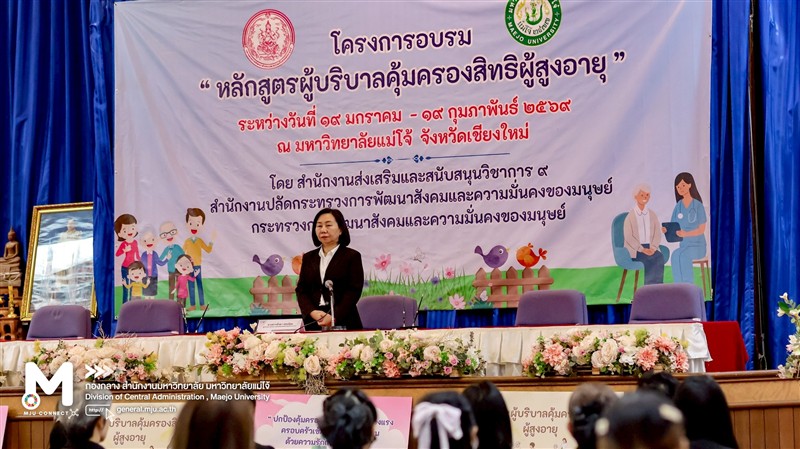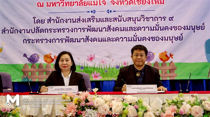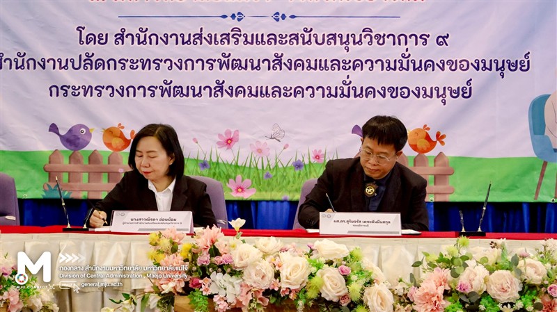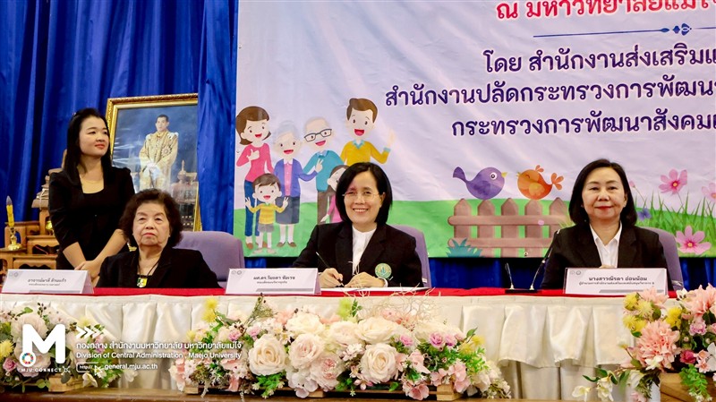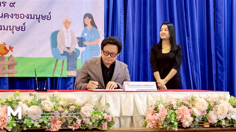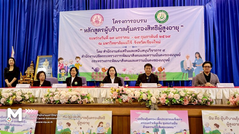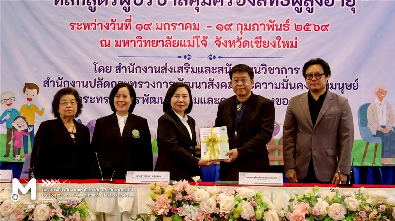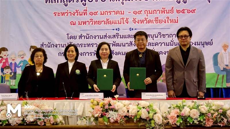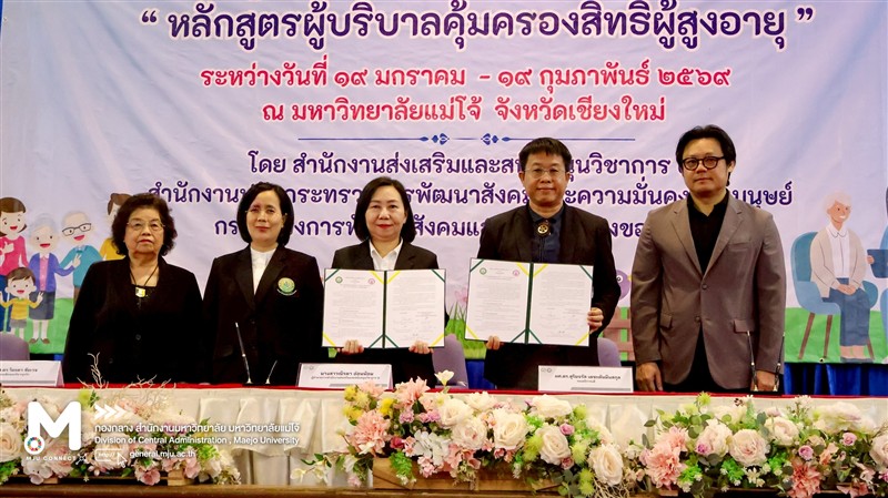 วันจันทร์ที่ 26 มกราคม 2569 มหาวิทยาลัยแม่โจ้ และ กระทรวงการพัฒนาสังคมและความมั่นคงของมนุษย์ จัดพิธีเปิดและพิธีลงนามความร่วมมือทางวิชาการโครงการฝึกอบรมหลักสูตร "ผู้บริหารและคุ้มครองสิทธิผู้สูงอายุ" ระหว่าง สำนักงานส่งเสริมและสนับสนุนวิชาการ 9 กับ มหาวิทยาลัยแม่โจ้ ณ ห้องข้าวหอมมะลิ อาคารเฉลิมพระเกียรติสมเด็จพระเทพรัตนราชสุดา มหาวิทยาลัยแม่โจ้ โดยได้รับเกียรติจาก คุณวณิรดา อ่อนน้อม ผู้อำนวยการสำนักงานส่งเสริมและสนับสนุนวิชาการ 9 เป็นประธานในพิธี พร้อมด้วย ผู้ช่วยศาสตราจารย์ ดร.สุริยะจรัส เตชะตันมีนสกุล รองอธิการบดีมหาวิทยาลัยแม่โจ้ เป็นผู้แทนลงนามฝ่ายมหาวิทยาลัย โดยมี ผู้ช่วยศาสตราจารย์ ดร.วิยะดา ชัยเวช คณบดีคณะบริหารธุรกิจ ,อาจารย์มาลี ล้วนแก้ว คณบดีคณะพยาบาลศาสตร์ และ อาจารย์ ดร.โชคอนันต์ วาณิชย์เลิศธนาสาร คณบดีคณะสถาปัตยกรรมศาสตร์และการออกแบบสิ่งแวดล้อม เข้าร่วมเป็นเกียรติในพิธีและร่วมเป็นสักขีพยานในความร่วมมือครั้งสำคัญนี้