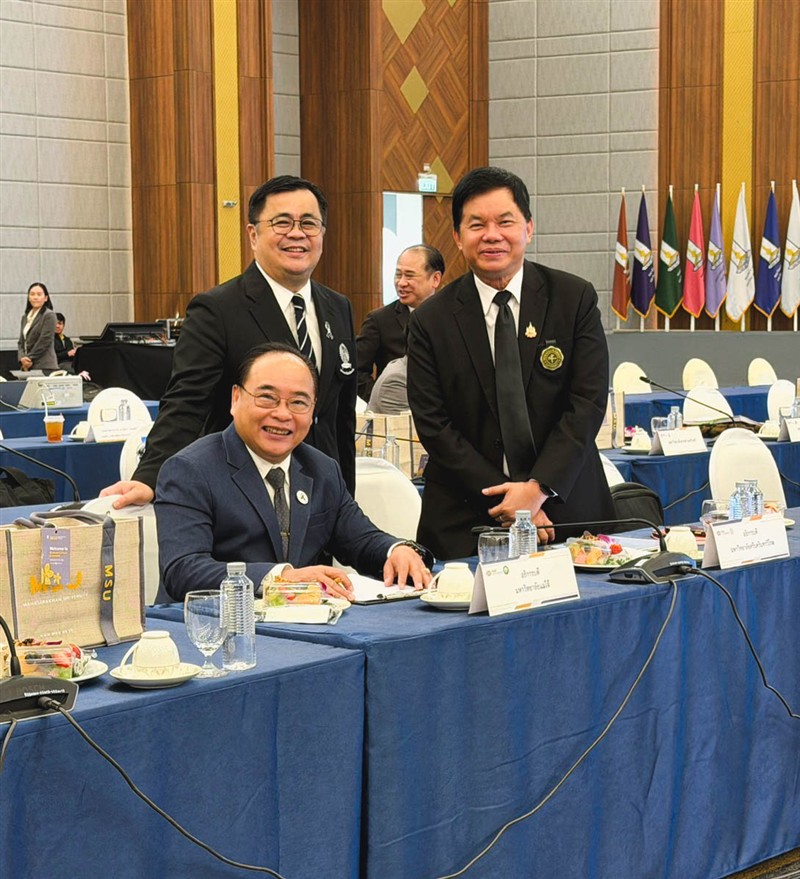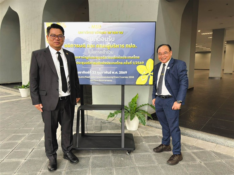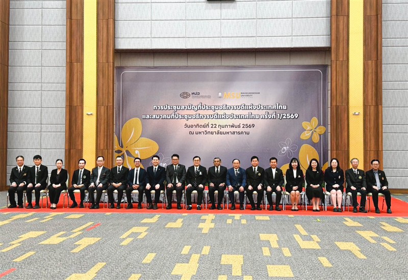 วันที่ 21-22 กุมภาพันธ์ 2569 รองศาสตราจารย์ ดร.วีระพล ทองมา อธิการบดีมหาวิทยาลัยแม่โจ้ พร้อมด้วย ผู้ช่วยศาสตราจารย์ ดร.ประภากร ธาราฉาย รองอธิการบดี เข้าร่วมการประชุมสามัญ ทปอ. และสมาคม ทปอ. ครั้งที่ 1/2569 ซึ่งมหาวิทยาลัยมหาสารคามเป็นเจ้าภาพจัดงาน โดยมี ศาสตราจารย์ ดร.วิเลิศ ภูริวัชร อธิการบดีจุฬากรณ์มหาวิทยาลัย และประธานที่ประชุมอธิการบดีแห่งประเทศไทย (ทปอ.) เป็นประธานการประชุม ณ ห้องประชุม ชั้น 2 อาคารเฉลิมพระเกียรติฯ มหาวิทยาลัยมหาสารคามในการนี้ ที่ประชุมได้ร่วมหารือเพื่อร่วมกำหนดทิศทางเชิงนโยบายด้านการอุดมศึกษา วิทยาศาสตร์ วิจัย และนวัตกรรมของประเทศ โดยมีวาระที่น่าสนใจ อาทิ การปรับตัวของหลักสูตร การพัฒนารูปแบบการเรียนรู้ตลอดชีวิต (Life-long Learning) เพื่อตอบโจทย์ตลาดแรงงานปี 2026, การสร้างเครือข่ายงานวิจัยและนวัตกรรมร่วมกันระหว่าง 36 สถาบัน เพื่อเพิ่มขีดความสามารถในการแข่งขันของประเทศ, แนวทางการจัดสรรทรัพยากรภายใต้ความท้าทายด้านประชากรวัยเรียนที่ลดลง และการนำ AI และระบบ Virtual Campus มาใช้ในการเรียนการสอนอย่างมีประสิทธิภาพ