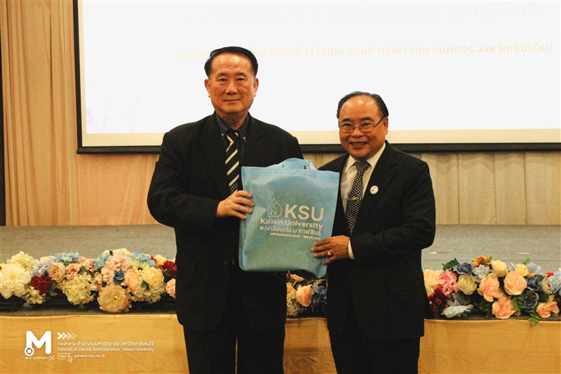 วันอังคารที่ 24 กุมภาพันธ์ 2569 ที่โรงแรมเชียงใหม่ แกรนด์วิว โฮเทล แอนด์ คอนเวนชั่น เซ็นเตอร์ จังหวัดเชียงใหม่ รองศาสตราจารย์ ดร.วีระพล ทองมา อธิการบดีมหาวิทยาลัยแม่โจ้ ร่วมบรรยายพิเศษเรื่อง “บทบาทและทิศทางในการขับเคลื่อนการพัฒนาท้องถิ่น : มิตด้านการเกษตร” โครงการทบทวนแผนการพัฒนามหาวิทยาลัยและนโยบาย (Retreat) ของสภามหาวิทยาลัย มหาวิทยาลัยกาฬสินธุ์ โดยมี ดร.วิฑูรย์ สิมะโชคดี นายกสภามหาวิทยาลัยกาฬสินธุ์ และ รองศาสตราจารย์สุพรรณ สุดสนธิ์ อธิการบดีมหาวิทยาลัยกาฬสินธุ์ ร่วมให้การต้อนรับ ทั้งนี้มีผู้เข้าร่วมโครงการจำนวนกว่า 60 คน ประกอบด้วย กรรมการสภามหาวิทยาลัยผู้ทรงคุณวุฒิ ผู้บริหารมหาวิทยาลัยกาฬสินธุ์ คณาจารย์ และบุคลากร เพื่อร่วมกันขับเคลื่อนมหาวิทยาลัยกาฬสินธุ์ สู่ความเป็นเลิศที่ยั่งยืน