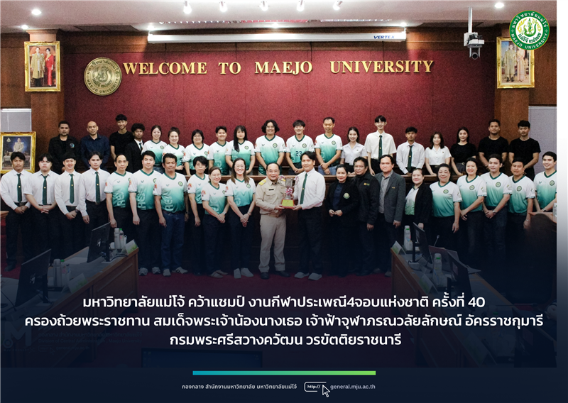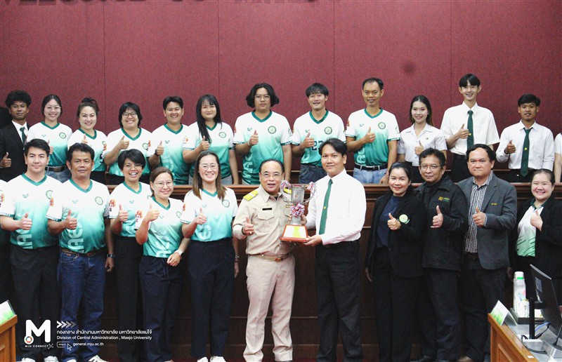 วันพุธที่ 25 กุมภาพันธ์ 2569 คณะผลิตกรรมการเกษตร คณะสัตวศาสตร์และเทคโนโลยี และคณะเทคโนโลยีการประมงและทรัพยากรทางน้ำ นำนักศึกษาที่เข้าร่วมการแข่งขันกีฬาทักษะเกษตร งานประเพณี 4 จอบแห่งชาติ ครั้งที่ 40 ณ มหาวิทยาลัยธรรมศาสตร์ ศูนย์รังสิต เข้าพบคณะผู้บริหารมหาวิทยาลัยเพื่อรายงานผลการแข่งขันและได้รับรางวัลชนะเลิศ “ถ้วยพระราชทานสมเด็จพระเจ้าน้องนางเธอ เจ้าฟ้าจุฬาภรณวลัยลักษณ์ อัครราชกุมารี กรมพระศรีสวางควัฒน วรขัตติยราชนารี”โอกาสนี้ ได้มอบถ้วยรางวัลให้เป็นเกียรติประวัติแก่มหาวิทยาลัย โดยได้รับเกียรติจาก รองศาสตราจารย์ ดร.วีระพล ทองมา อธิการบดี เป็นผู้แทนรับมอบพร้อมทั้งกล่าวชื่นชมยินดีและเป็นกำลังใจแก่นักศึกษาที่ได้มุ่งมั่นทุ่มเทในการทำกิจกรรมและสร้างชื่อเสียงแก่ตนเองและมหาวิทยาลัย ทั้งนี้มี คณะผู้บริหารร่วมแสดงความยินดี ณ ห้องประชุมสภามหาวิทยาลัย ชั้น 5 อาคารสำนักงานมหาวิทยาลัยสำหรับผลการแข่งขัน มหาวิทยาลัยแม่โจ้ ได้รับ รางวัลชนะเลิศ ครองถ้วยพระราชทานสมเด็จพระเจ้าน้องนางเธอ เจ้าฟ้าจุฬาภรณวลัยลักษณ์ อัครราชกุมารี กรมพระศรีสวางควัฒน วรขัตติยราชนารี โดย สามารถกวาดมาได้ 14 เหรียญทอง , 3 เหรียญเงิน และ 1 เหรียญทองกีฬาสาธิต รวม 18 เหรียญ จาก 19 ทักษะ