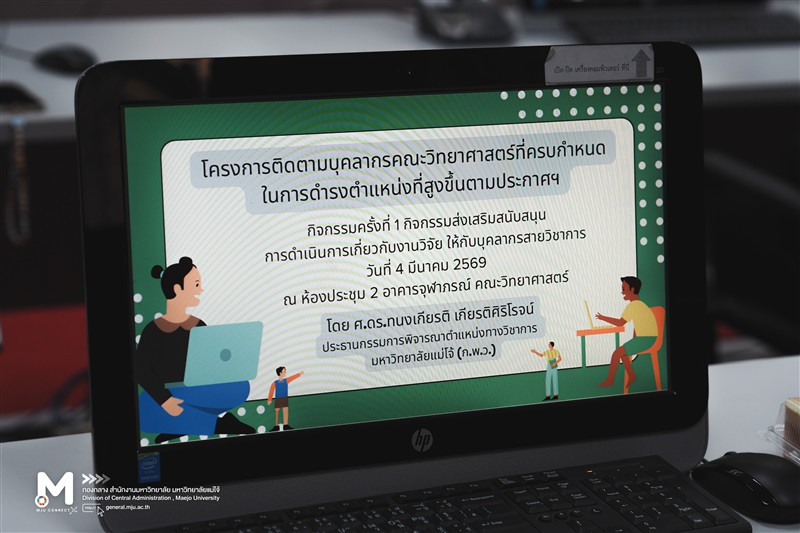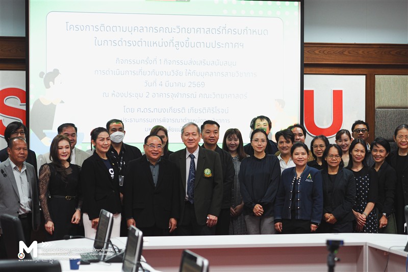 วันพุธที่ 4 มีนาคม 2569 รองศาสตราจารย์ ดร.วีระพล ทองมา อธิการบดีมหาวิทยาลัยแม่โจ้ เป็นประธานเปิดโครงการและร่วมเปิดคลินิกนักวิจัย (Paper Clinic) โครงการติดตามบุคลากรคณะวิทยาศาสตร์ที่ครบกำหนดในการดำรงตำแหน่งที่สูงขึ้นตามประกาศฯ (กิจกรรมครั้งที่ 1 กิจกรรมส่งเสริมสนับสนุนการดำเนินการเกี่ยวกับงานวิจัยให้กับบุคลากรสายวิชาการ) และ รองศาสตราจารย์ ดร.ยุวลี อันพาพรม คณบดีคณะวิทยาศาสตร์ กล่าวรายงานการ ทั้งนีัโครงการดังกล่าวมีวัตถุประสงค์เพื่อส่งเสริมสนับสนุนการดำเนินการเกี่ยวกับงานวิจัย ให้กับบุคลากรสายวิชาการของคณะวิทยาศาสตร์ เพื่อจะได้ดำเนินการขอกำหนดตำแหน่งทางวิชาการในระดับที่สูงขึ้นตามระยะเวลาที่มหาวิทยาลัยกำหนด